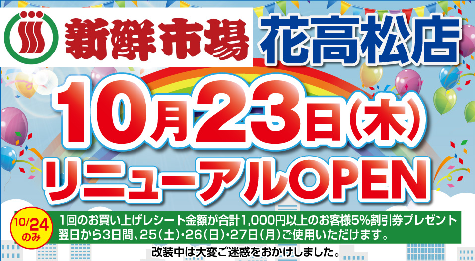 新鮮市場 花高松店リニューアルオープンのお知らせ